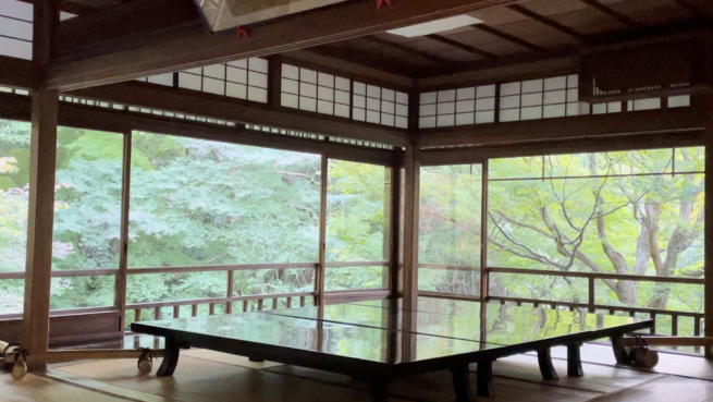 嵐山の祐斎亭と同じく、テーブルに反射して映る紅葉の美しい風景が有名なのではないだろうか。