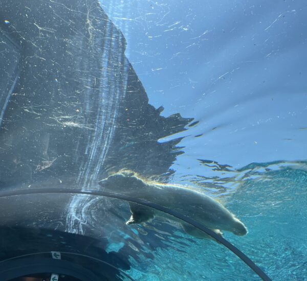 このシロクマの真隣の水槽はアザラシのプールになっていて、まだ体の小さな赤ちゃんアザラシが泳いでいて可愛かった。