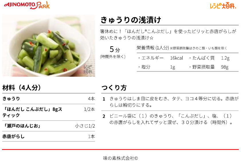 「刻んで漬けて、揉むだけで♪すぐ食べられる♪」