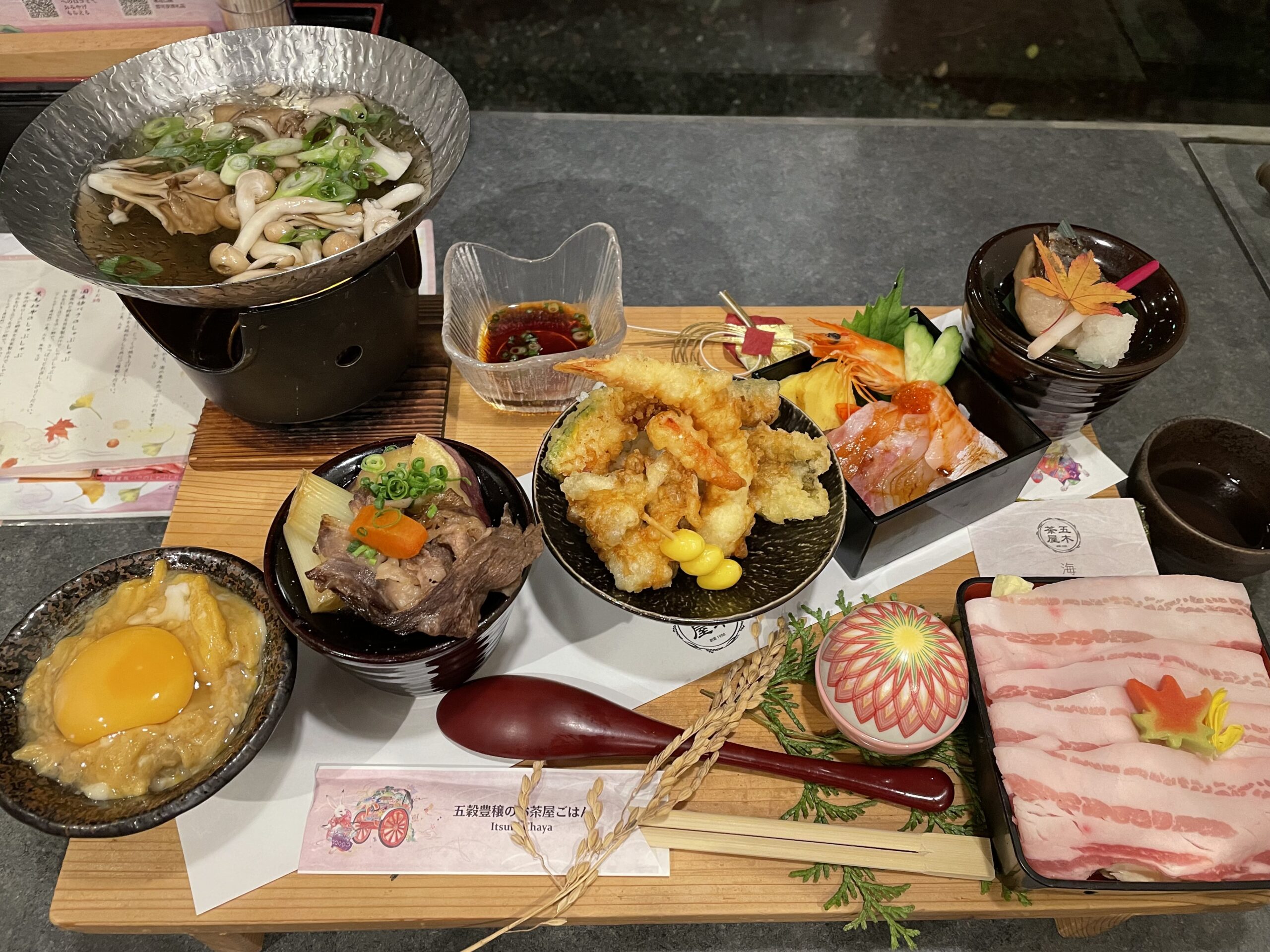 すべてが小さな丼ものになっており、お米を楽しむ御膳になっている。